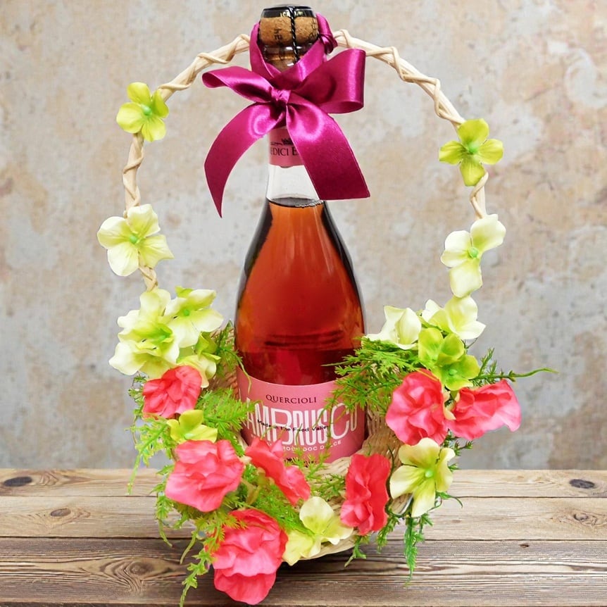 枯れない花のフラワーバスケットと、甘く華やぐイタリアのドルチェワイン ― ランブルスコ ―※造花使用